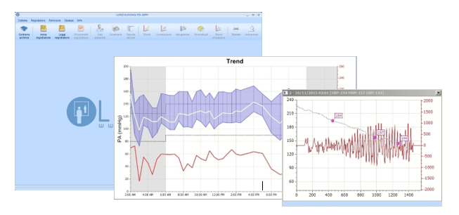 Il software EUROHOLTER ABPM gestisce questi registratori e dispone di tutte le più avanzate funzioni di analisi e validazione delle registrazioni: dal classico trend di pulsazioni e pressione, fino all’analisi dettagliata delle singole misure ecc.:
